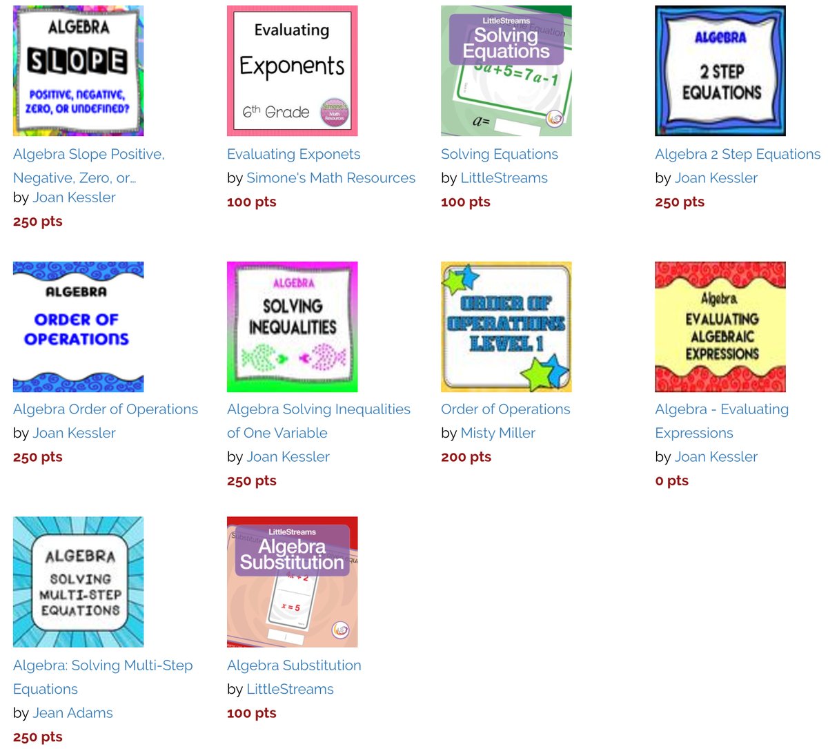 Middle schoolers must develop increasingly sophisticated skills in working with expressions and exponents. We have several items from Joan Kessler, LittleStreams, Simone’s Math Resources, Jean Adams, and Misty Miller to evaluate how well your students are working with Expressions and Exponents or to assign extra practice.