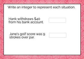 le schoolers are expected to extend their understanding of operations to all rational numbers, including negative numbers. Everyday reasoning about the meaning of negative numbers provides a solid foundation. Simone’s Math Resources’s Comparing Integers can be used as a pre-test, assessment, or practice of student ability to understand the applicability of negative numbers to real world problems.