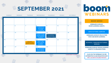 In August, we covered the basics in our Intro to Boom Learning Webinar. Our agents answered questions as Kyle led everyone through set up and toured tools and basic techniques for using Boom Cards to teach. In September, we launched a series of webinars led by educator-experts which goes live every Wednesday.
