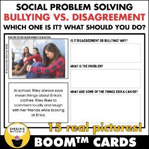 Understanding the difference between bullying and regular conflict is crucial for older students. The Speechie Witchie deck Bullying or Disagreement? (Social Problem Solving, Conflict Management) is designed for grades 3-7. This activity helps students navigate these situations by teaching them how to identify whether they’re dealing with bullying or just a disagreement.