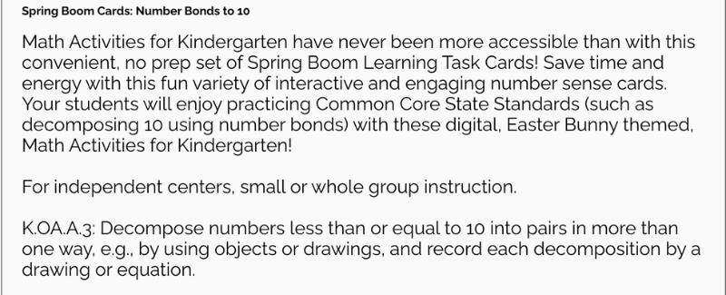 The description is where you provide users with a clear understanding of what they can expect from your Boom Cards.