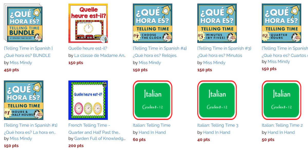 If your students are bilingual, older, studying a foreign language or need enrichment, consider assigning a deck about time in Spanish, French or Italian.